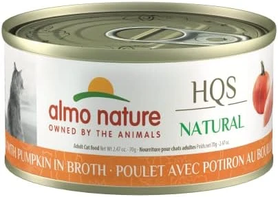 - Almo Nature Variety includes 4 assorted recipes: 6x Chicken Breast in broth, 6x Tuna and Cheese in broth, 6x Chicken with Pumpkin in broth, 6 x Tuna in broth.