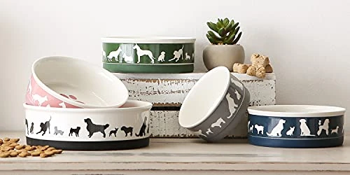 - DURABLE MATERIAL & EASY TO CLEAN: Pet bowl is made of porcelain ceramic with a silicone ring to keep from sliding on the floor; Conveniently dishwasher and microwave safe