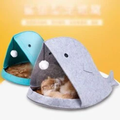 Cute Pet Bed Shark Shaped Cat Cave House Decorative Comfy Pet Nest Soft Small Animal Felt House